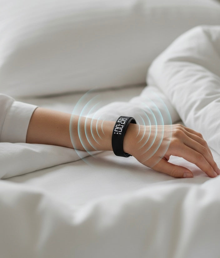 Przesypiasz 5 alarmów w telefonie? VibroBand™ działa inaczej. Fizyczna wibracja na nadgarstku jest niemożliwa do zignorowania. Twój mózg reaguje na nią szybciej niż na dźwięk. To budzik zaprojektowany specjalnie dla osób śpiących głęboko.